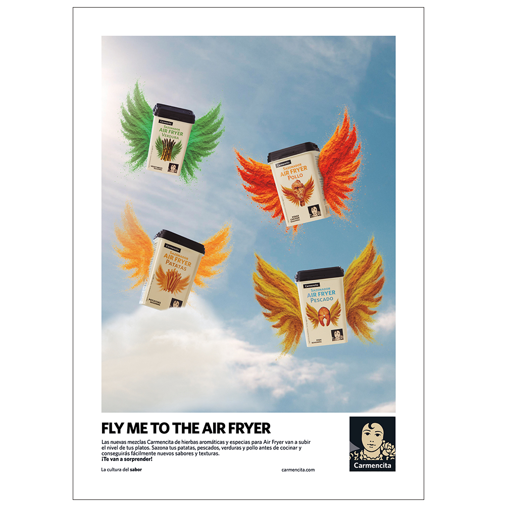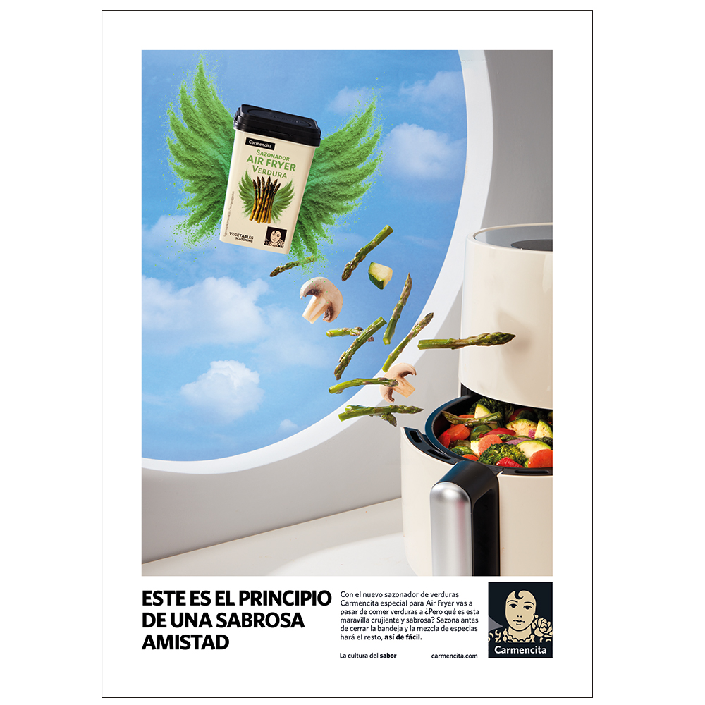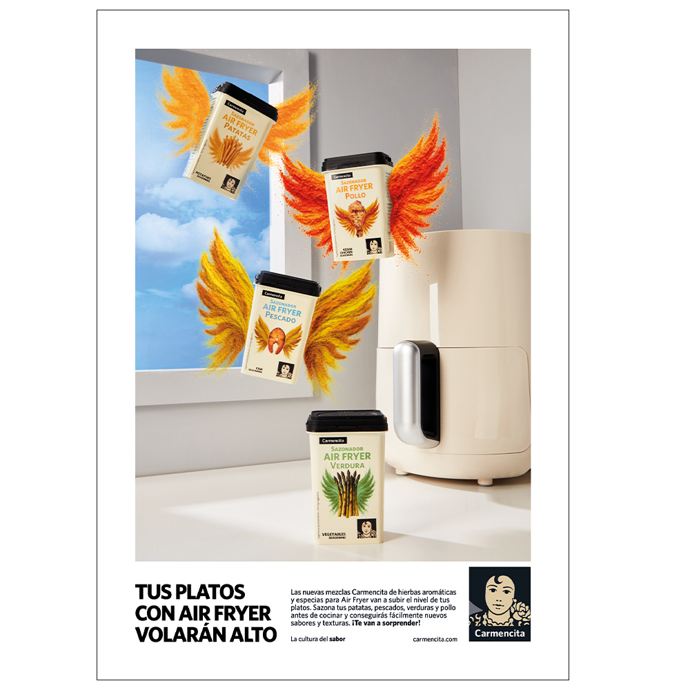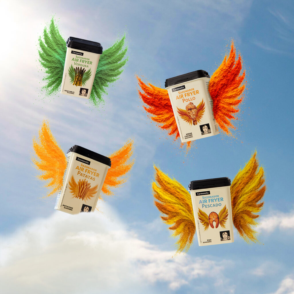 La propuesta de Aracnofobia para esta nueva gama de sazonadores parte del concepto “Air Friends para tu Air Fryer” presentando a este producto como el complemento ideal para cocinar con este electrodoméstico, al estilo de un grupo de amigos que comparten intereses, actividades o vínculos comunes.