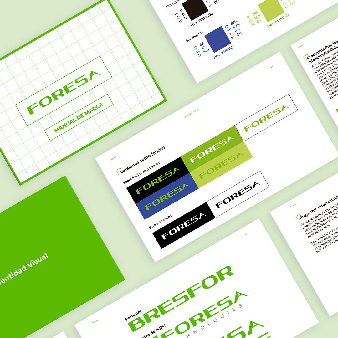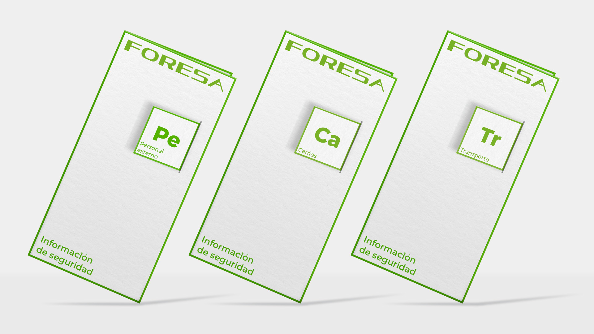Las principales áreas del trabajo de diseño comprenden el desarrollo de la nueva web de la compañía, la nueva señalética para las diferentes plantas de Foresa, nueva papelería, documentación comercial, catálogos, namings de producto  y sus packs.